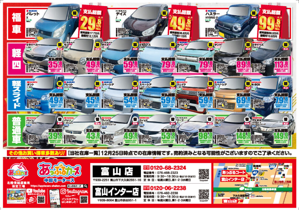 軽自動車、ミニバン、SUVが安い!富山市で新車を買うなら富山市市最大級のあっぷるカーズへ!