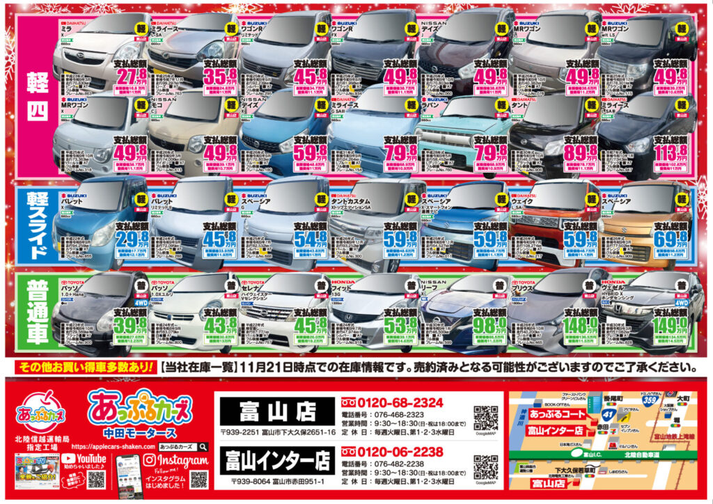 軽自動車、ミニバン、SUVが安い!富山市で新車を買うなら富山市市最大級のあっぷるカーズへ!