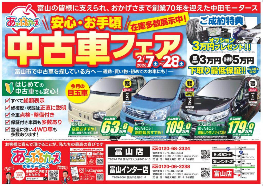 軽自動車、ミニバン、SUVが安い!富山市で新車を買うなら富山市市最大級のあっぷるカーズへ!