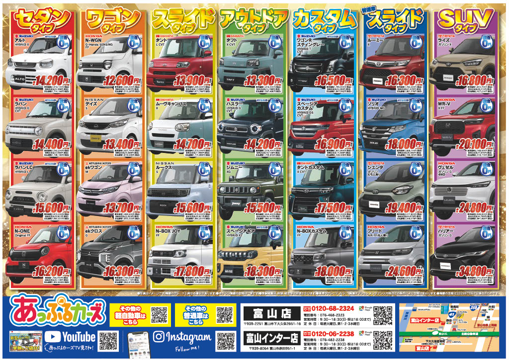 軽自動車、ミニバン、SUVが安い!富山市で新車を買うなら富山市市最大級のあっぷるカーズへ!